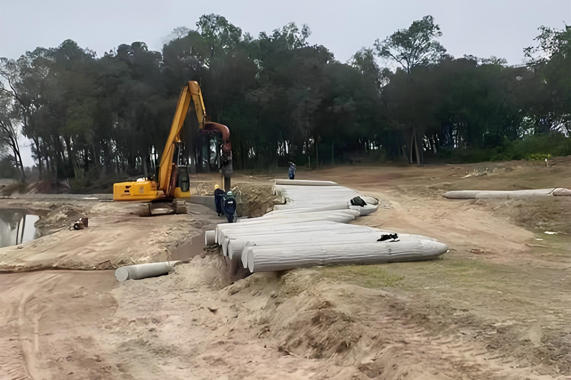 - 施工細節(jié):埋深不夠、地基沒處理,容易 “晃樁”:有些施工隊圖省事,把水泥仿木樁淺淺埋在土里,或者地基沒平整就直接打樁,時間長了樁體容易傾斜、晃動,甚至因受力不均開裂。正確的做法是:根據(jù)場景調整埋深(河道護岸至少埋 1.5 米,景觀圍欄至少埋 0.8 米),埋樁前先清理地基里的碎石、淤泥,必要時澆筑混凝土墊層,讓樁體 “扎根穩(wěn)”—— 這樣才能減少后期變形、斷裂的風險。