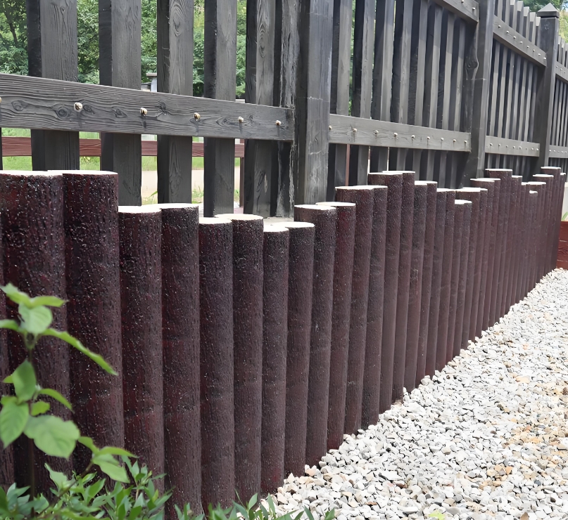 不管是松木、杉木還是硬木,實(shí)木樁的 “軟肋” 很明顯:天然材質(zhì)怕環(huán)境折騰,而水泥仿木樁剛好能補(bǔ)上這個短板。