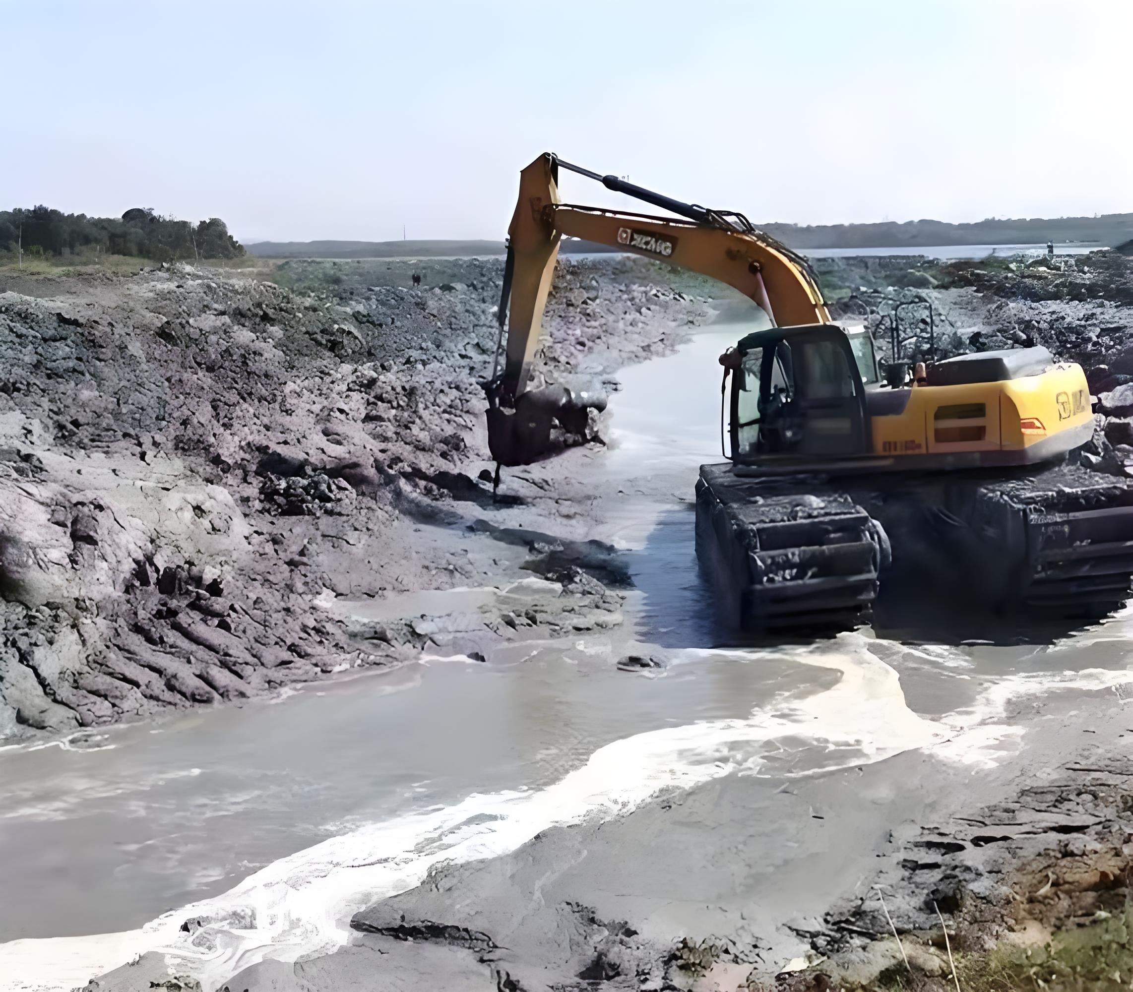 - 挖機的斗容和附屬裝置:自貢常用的 150 型水上挖機,標配挖斗容量在 0.6-0.8 立方米,處理一般水草淤泥沒問題;但如果水草特別多,換成帶鋸齒的挖斗或加裝破碎裝置,能把水草切斷,避免纏繞。另外,有些施工隊會在挖斗上焊上鋼筋網(wǎng)格,既能留住淤泥,又能讓多余的水分漏掉,間接提高處理效率。