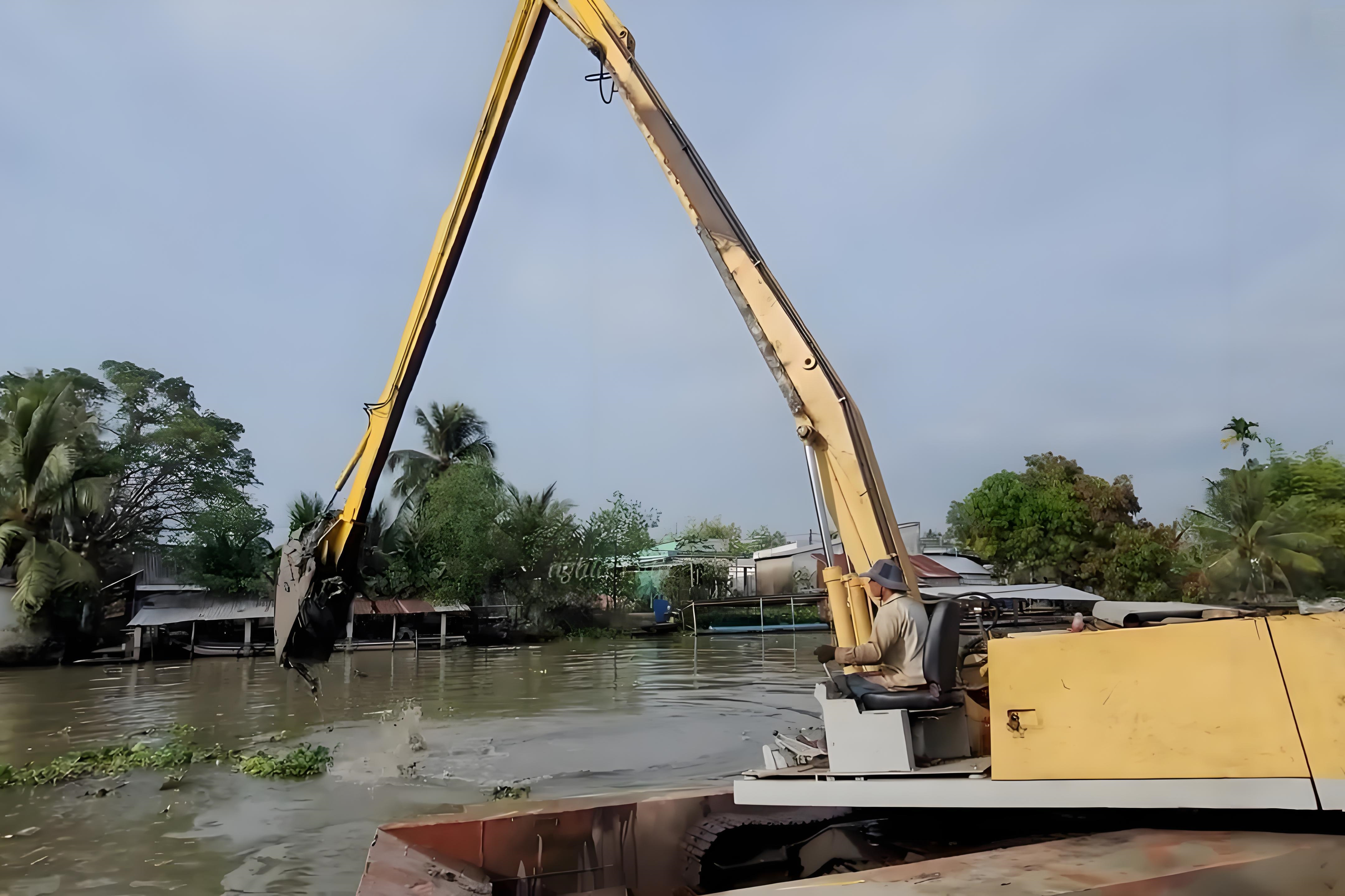 - 四川自貢挖機(jī)清淤施工隊 - 水上挖機(jī)清淤能處理含有水草的淤泥嗎?