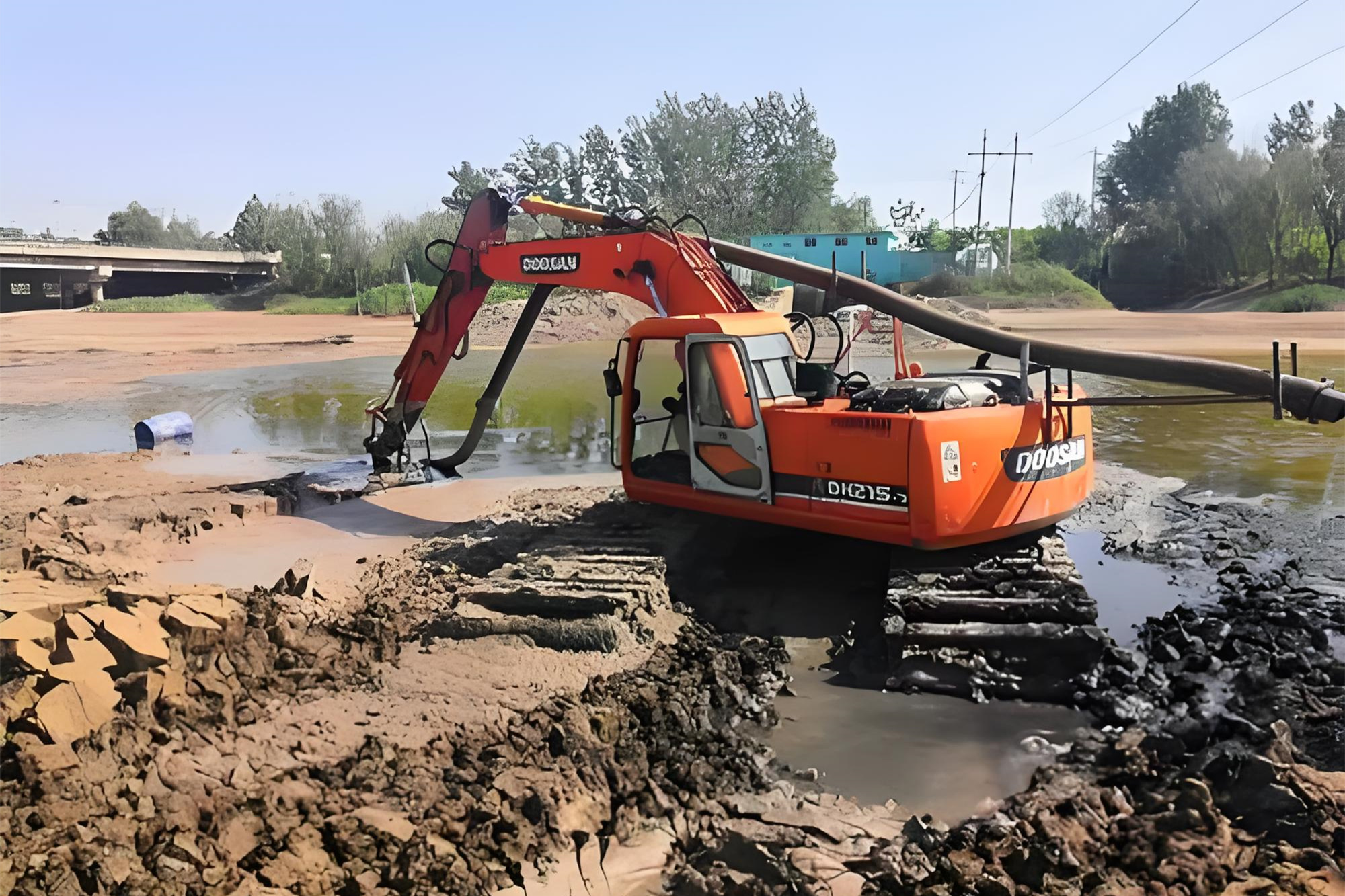 應(yīng)對辦法:清淤前先用探測設(shè)備檢查水底雜物,人工清理大型障礙物;作業(yè)時若發(fā)現(xiàn)鏟斗卡頓,立即停機檢查,不要強行操作,必要時更換耐磨型斗齒。